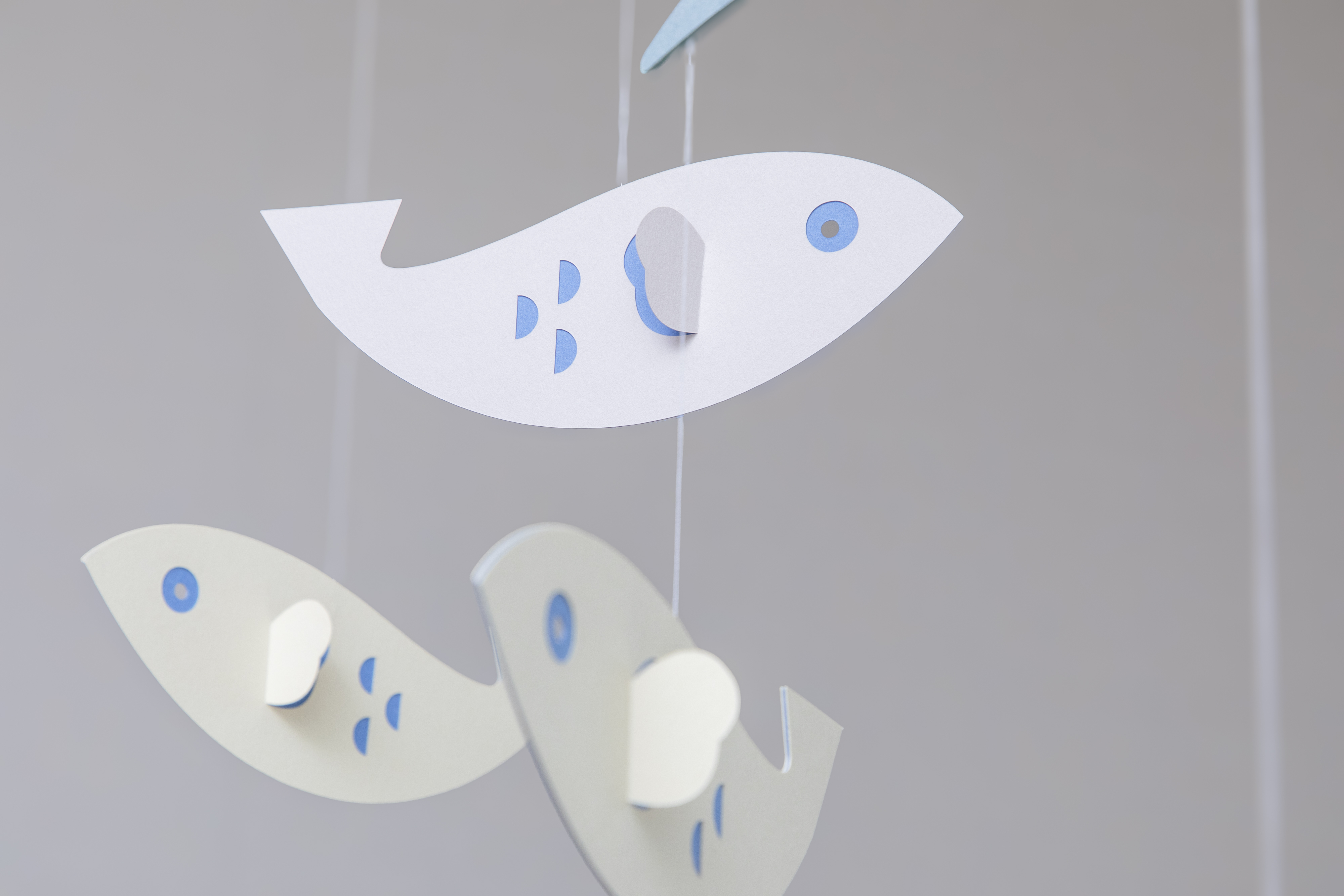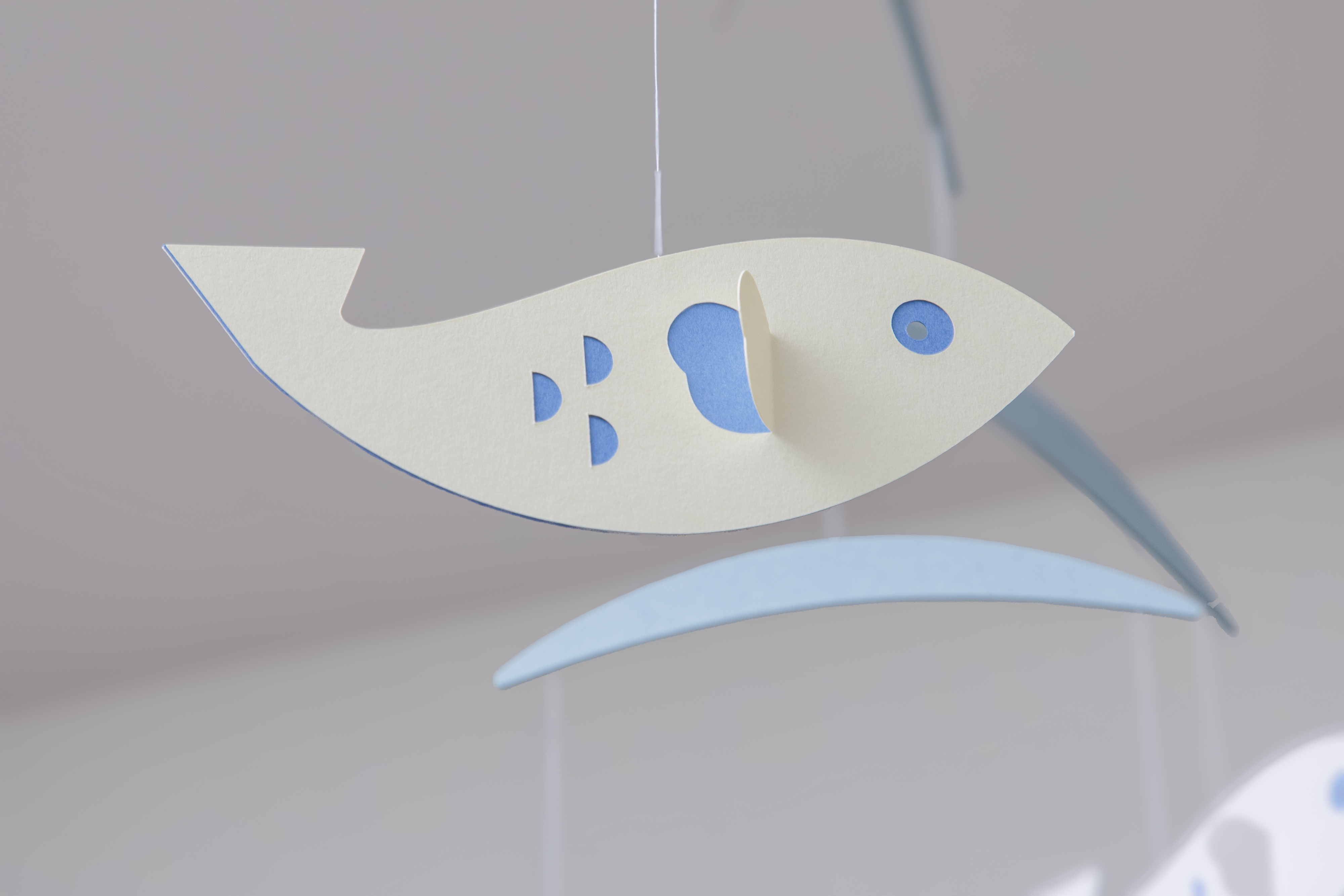 更にこちらのシリーズは、紙の選定にもこだわりました。何種類もの紙を試して、最も合う質感の紙を選んでいるので、よく見るとパーツごとに紙の質感が異なるのがわかります。こだわりを詰め込んだモビールは、見ていて心地よくなるような工夫がされているのです。
