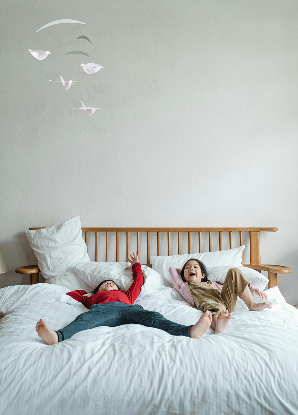 スマホやタブレットの普及で下を向くことが多くなった今、ふと顔を上げた時にモビールが回っていると、ほっとします。ちょっとしたことですが、「自然の動き」が視界に入ってくることで心が少し和むのです。モビールをひとつ飾っておくだけで、自然とお子様や赤ちゃんの情操教育にもなりますよ。